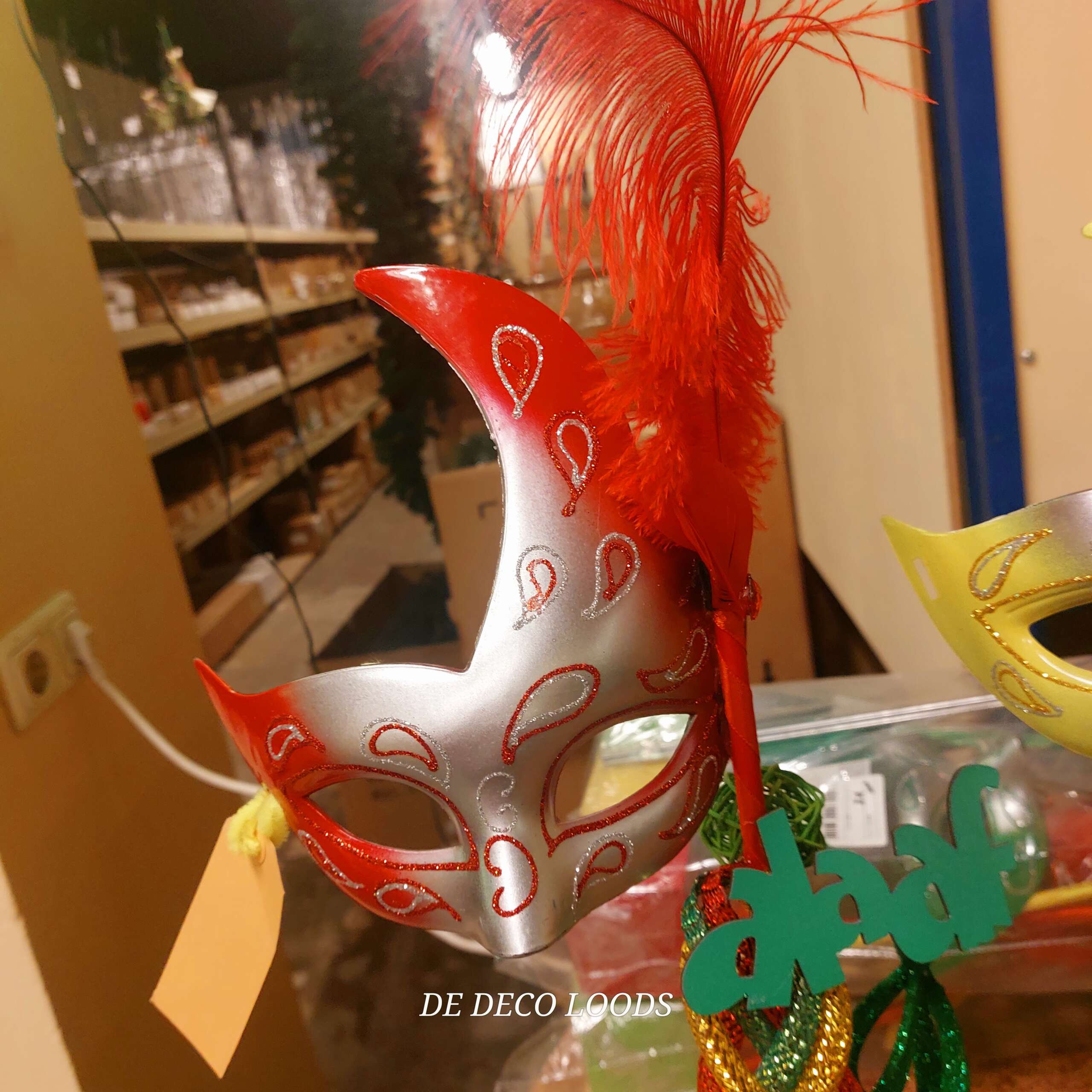Breng de vrolijke energie van het carnavalsseizoen rechtstreeks naar je feesttafel met Carnaval op Tafel – een kleurrijke en feestelijke decoratie die meteen de juiste sfeer neerzet. Deze unieke tafeldecoratie bestaat uit elegante maskers op stevige stokjes, uitgevoerd in de traditionele carnavalskleuren rood, geel en groen. Elk masker is rijk gedetailleerd met glinsterende accenten en speelse veren, waardoor ze een echte blikvanger vormen.