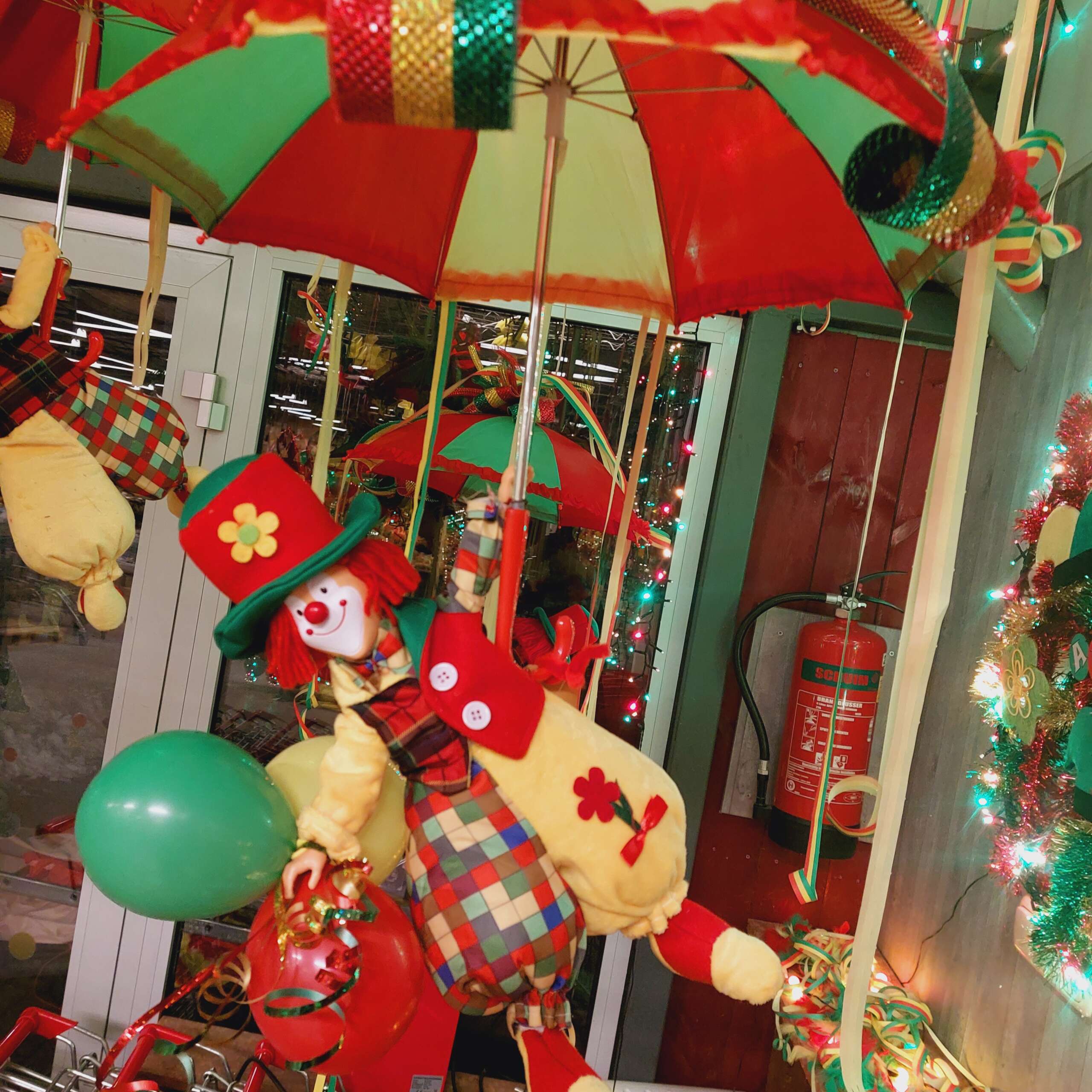 Carnavalsclown Harrie is dé vrolijke blikvanger voor elke carnaval- of Vastelaovendversiering. Met zijn grappige snuitje, dikke pofbroek en hoge hoed hangt deze kleurrijke clown speels aan zijn paraplu. De decoratieve details in rood, geel en groen – de bekende carnavalskleuren – zorgen meteen voor sfeer en herkenning.