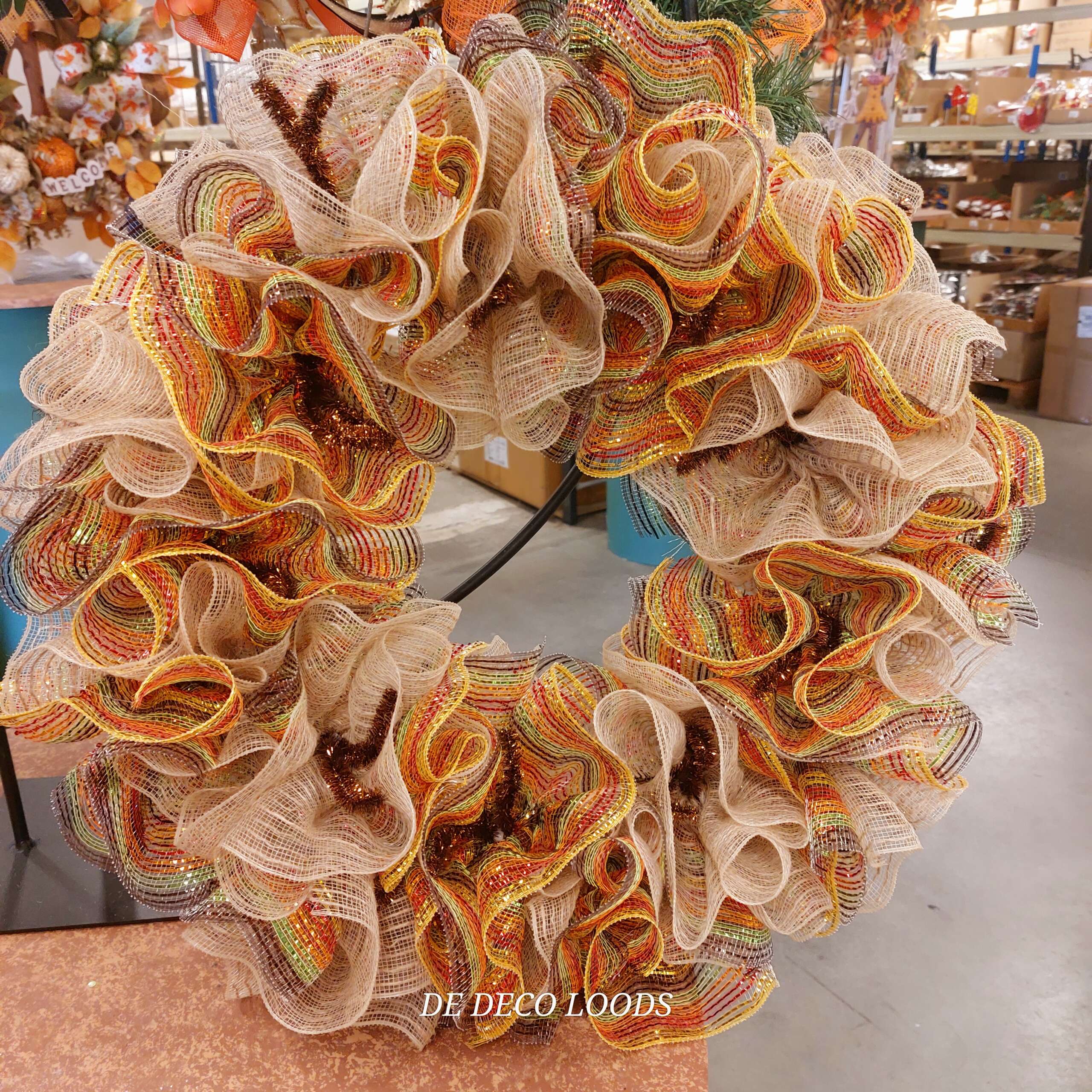 Fall tone decomesh wreath, is een krans als half fabricaat gemaakt.