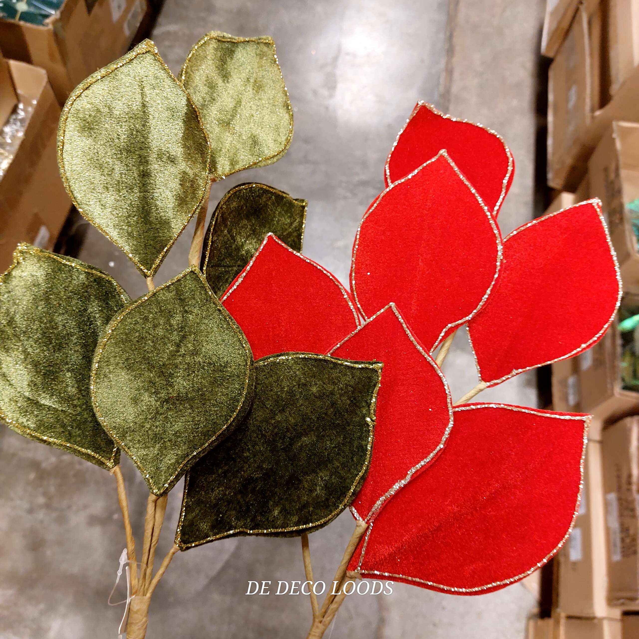 Fluweel blad takken. Breng warmte, kleur en een vleugje luxe in je kerstdecoratie met deze prachtige set van 2 fluweel bladeren.