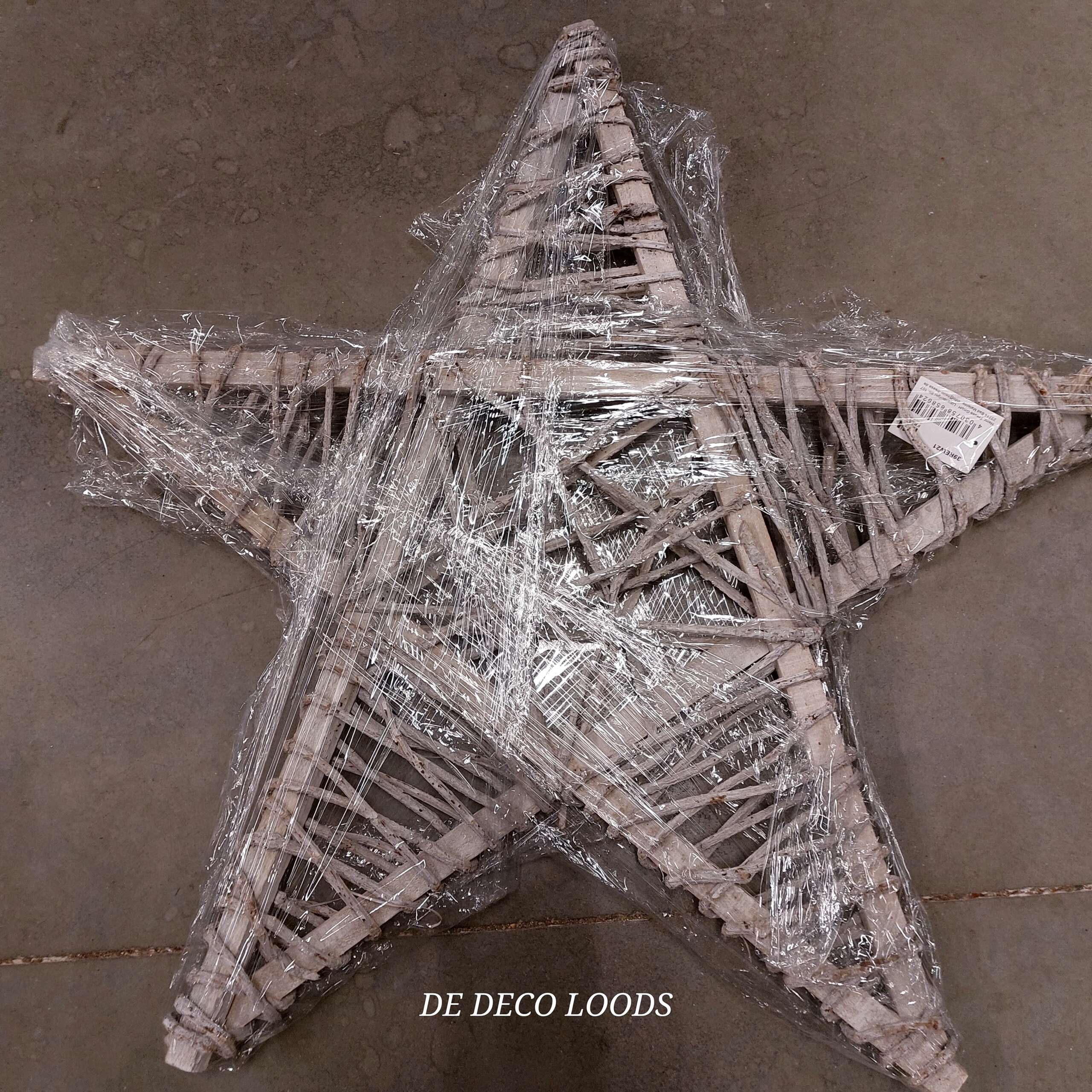 Houten ster 80cm, is een white wash houten ster omwikkeld met liaan hout.