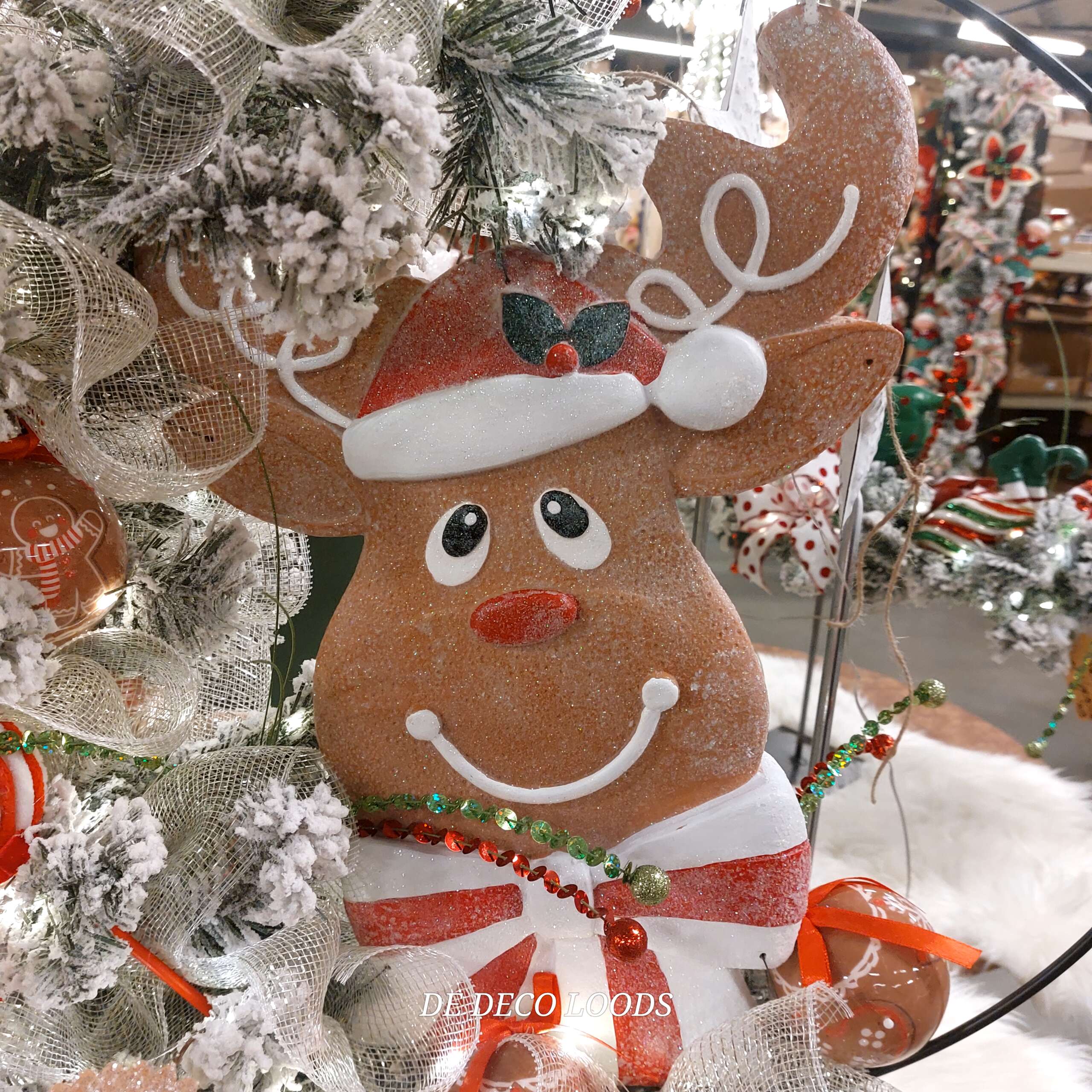 Kerstdecoratie Gingerbread Reindeer, is een ware blikvanger voor de feestdagen. Met een afmeting van 60 cm hoog en 60 cm breed biedt deze decoratie een rijke en speelse compositie die de warme sfeer van kerst perfect vangt.