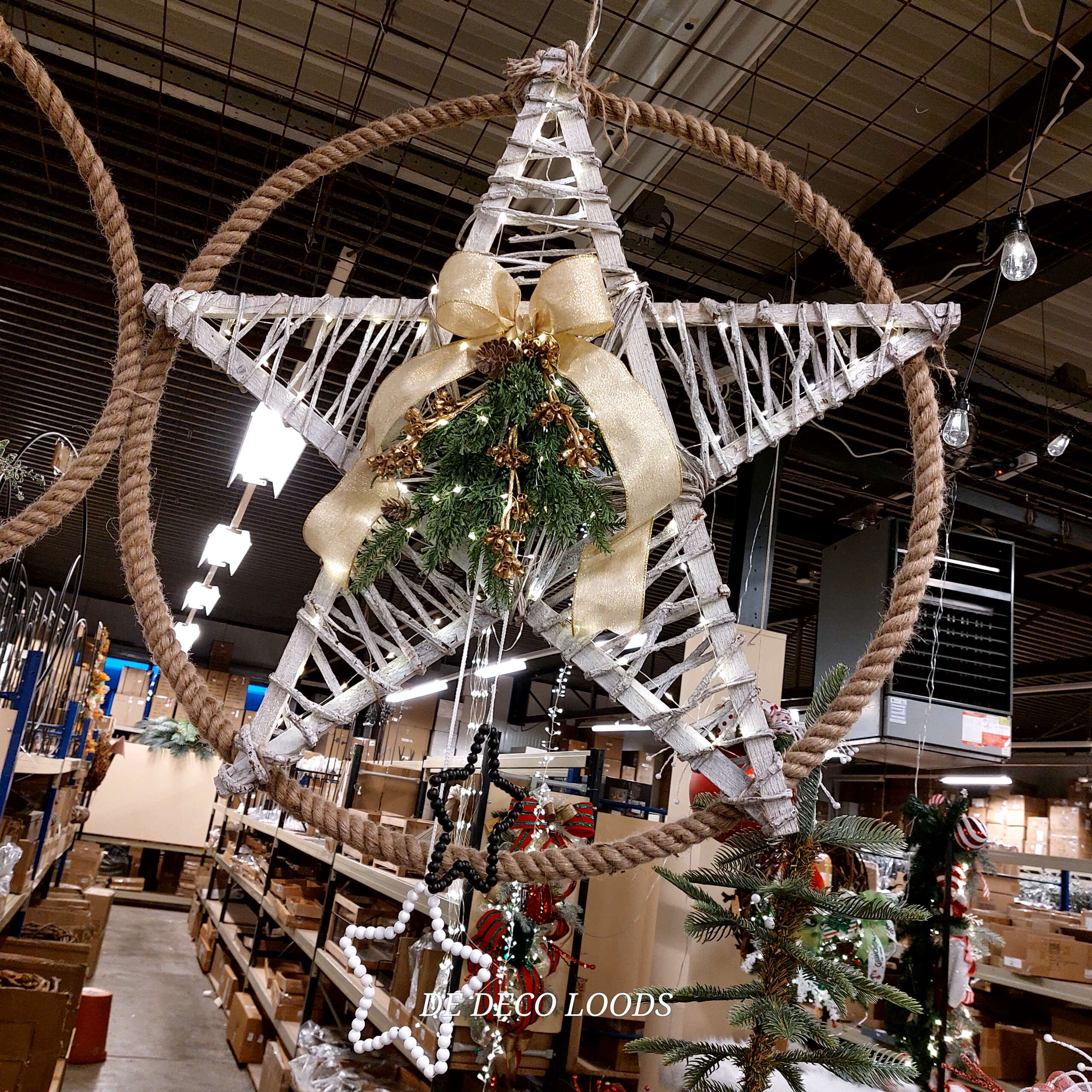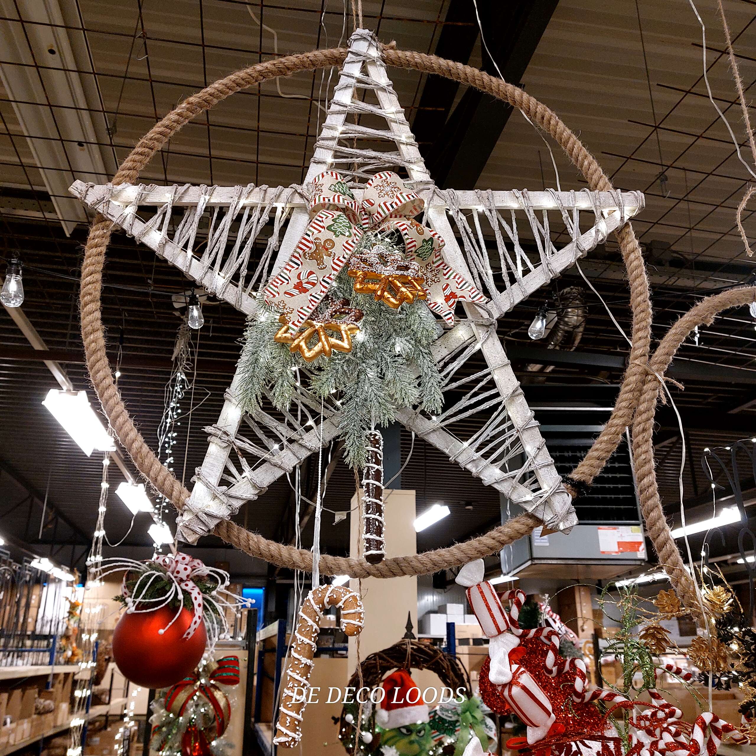 In de ster is subtiele verlichting aangebracht, wat zorgt voor een sfeervolle gloed tijdens de donkere winteravonden. De combinatie van natuurlijke materialen, traditionele kerstsymbolen en zachte lichtjes maakt deze ster ideaal als wanddecoratie, raamdecoratie of als eyecatcher in de woonkamer.