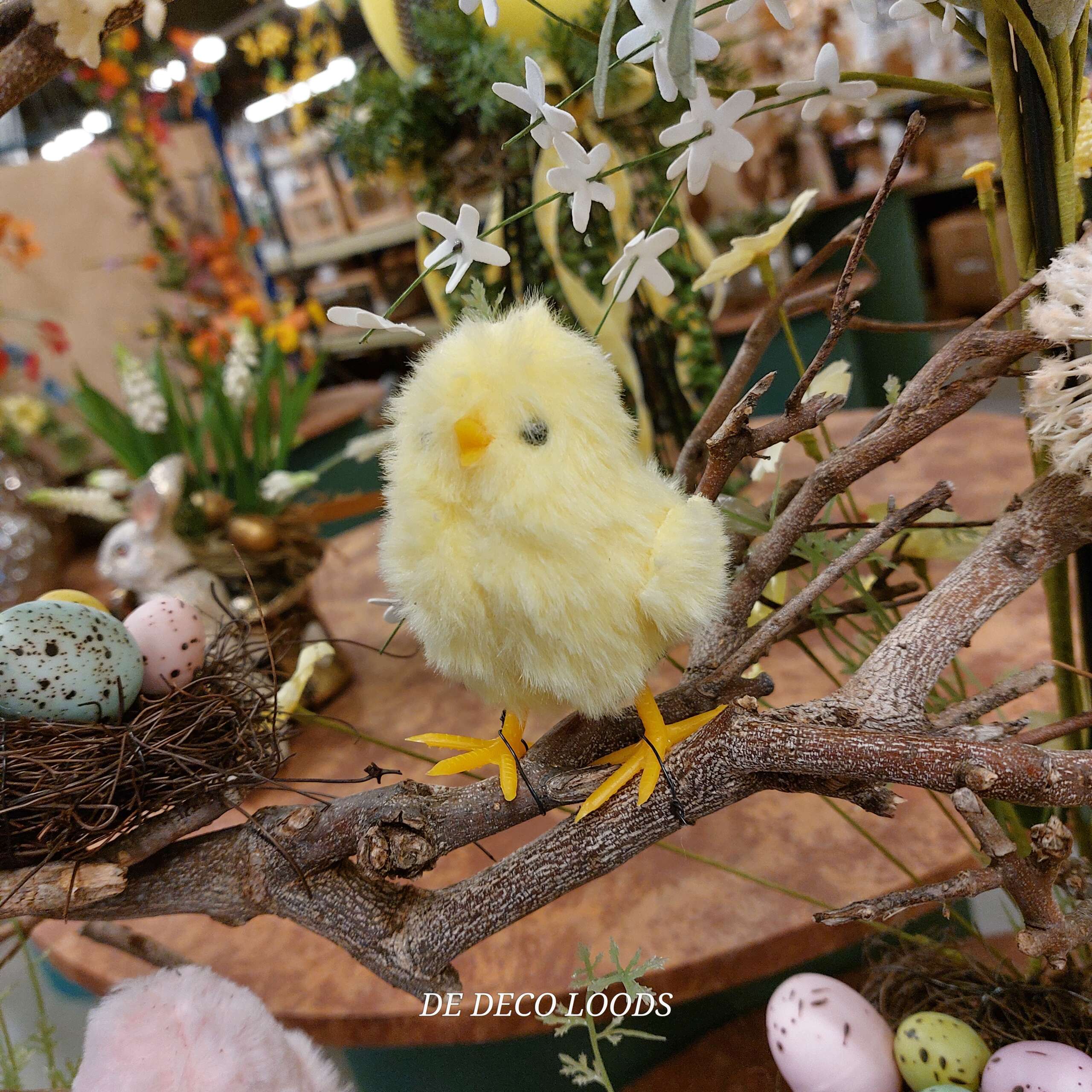 Dit decoratieve paasframe is ideaal als centerpiece op vensterbank, dressoir of als decoratie in de hal, of als opvallend element in een winkel of horecazaak. De mix van texturen — van zachte kuikentjes tot bloemen — maakt het geheel levendig en uitnodigend. Een absolute must-have voor de lente!