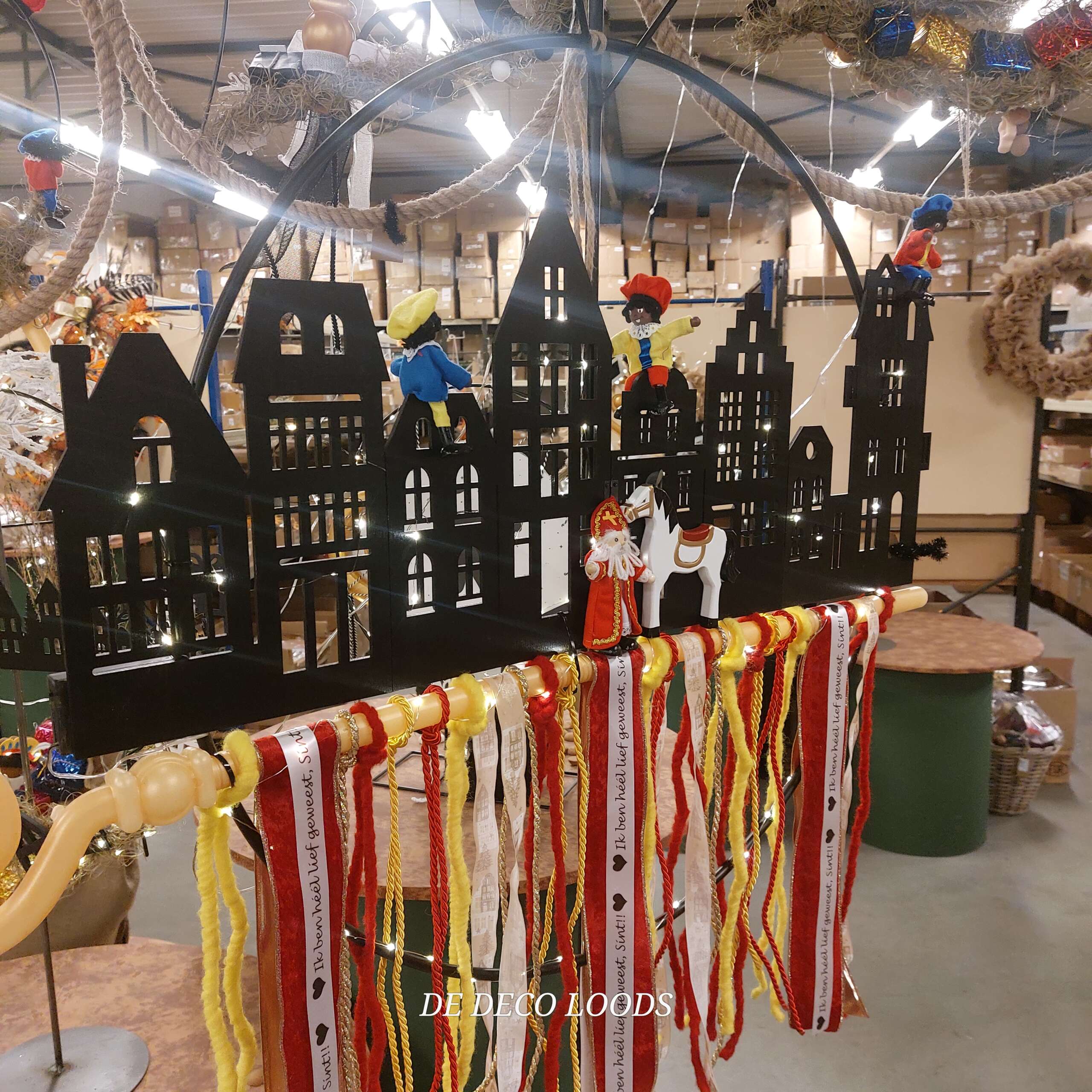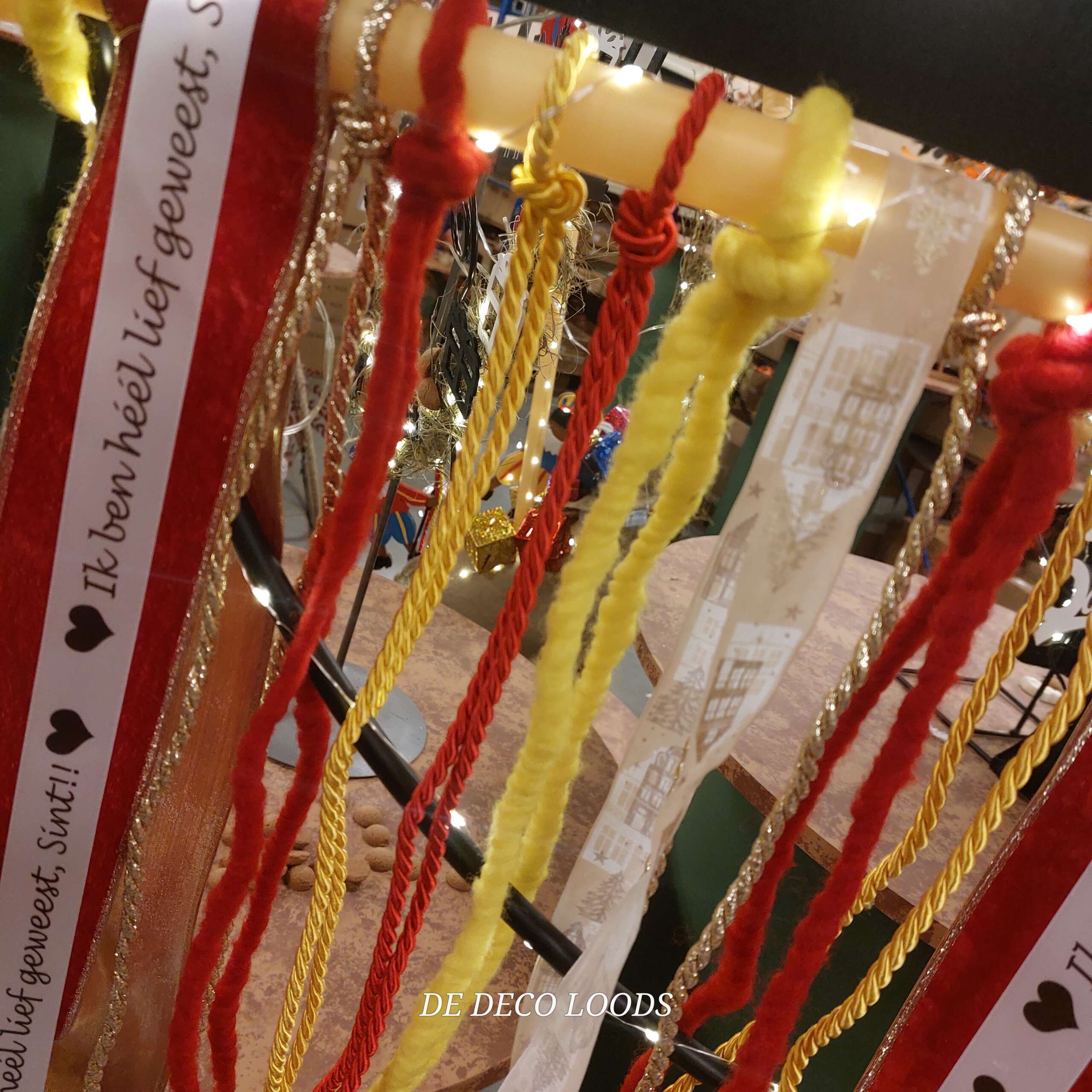 Uitgevoerd in de klassieke Sinterklaas kleuren en rijkelijk versierd met diverse koorden en linten, straalt het warmte en nostalgie uit.
