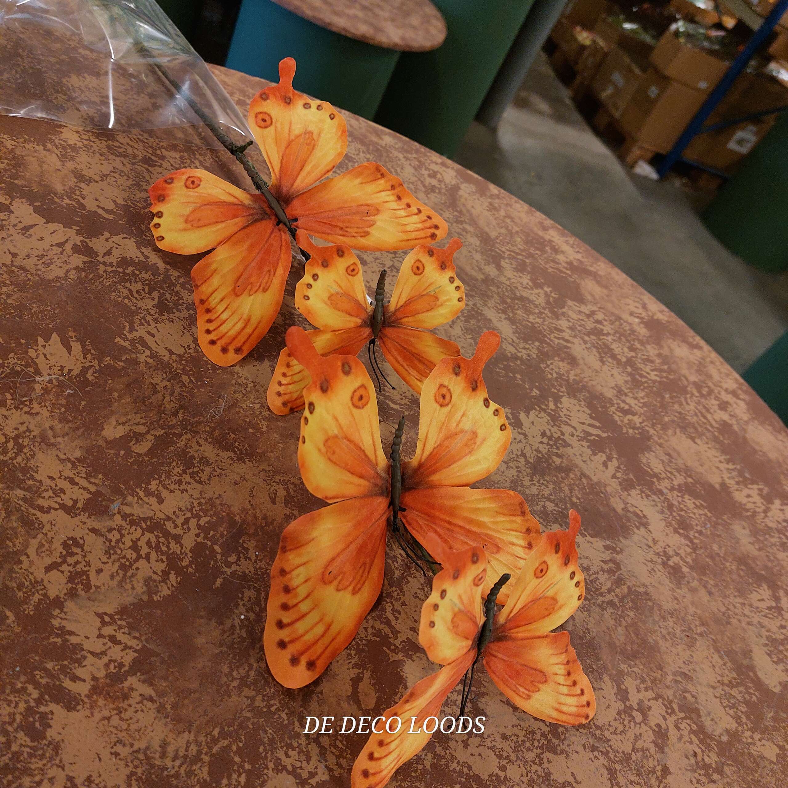 Vlindertak oranje bestaat uit 4 vlinders . Twee grote en twee kleine.